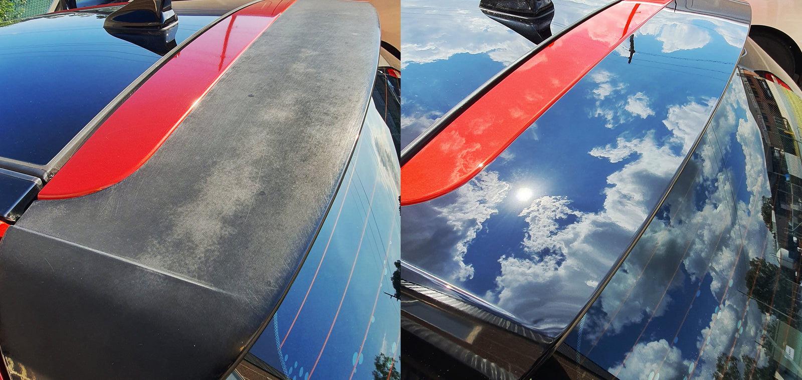 The picture below shows a good example of the before and after performing TWO STAGE paint correction by our team.
